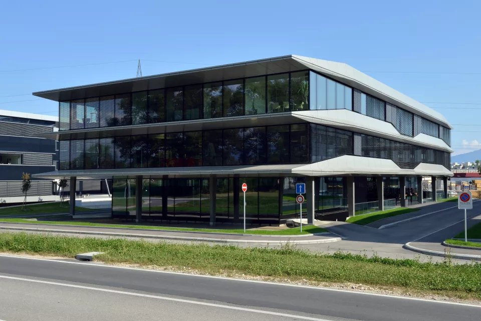 À une quinzaine de minutes de Genève, à Eysins dans le canton de Vaud, le centre d’affaires Business Park Terre Bonne accueille une vingtaine d’entreprises, dont Kodak, Tupperware et la Mobilière. Six bâtiments y totalisent plus de 48'000 m² de surface. Pour ce projet, Favre+Guth a collaboré avec le bureau hollandais Meyer en Van Schooten Architecten BV.
