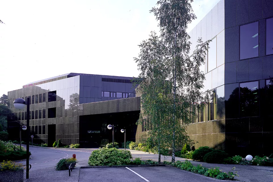 La société Caterpillar Overseas a son siège administratif depuis 1977 aux abords du parc de la Grange. «Un objet presque abstrait, très simple, posé au milieu du parc», telle est la description des architectes. Ses surfaces en verre, en granit Labrador et la simplicité des traitements extérieurs en font un bâtiment intemporel.
