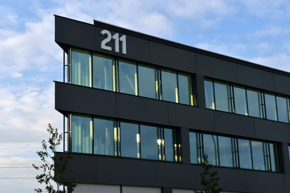 Stratégiquement bien situé, c'est le premier bâtiment visible à la sortie de la douane de Ferney-Voltaire. Le propriétaire de la parcelle, la société Aton Développement S.A., et Favre+Guth ont oeuvré ensemble afin de construire cet immeuble à vocation administrative. Il comporte deux souterrains, deux étages, un rez-de-chaussée et une terrasse panoramique. Deux types de façades se rejoignent sur des angles droits : des façades souples, ondulantes et des façades rigides, sèches.