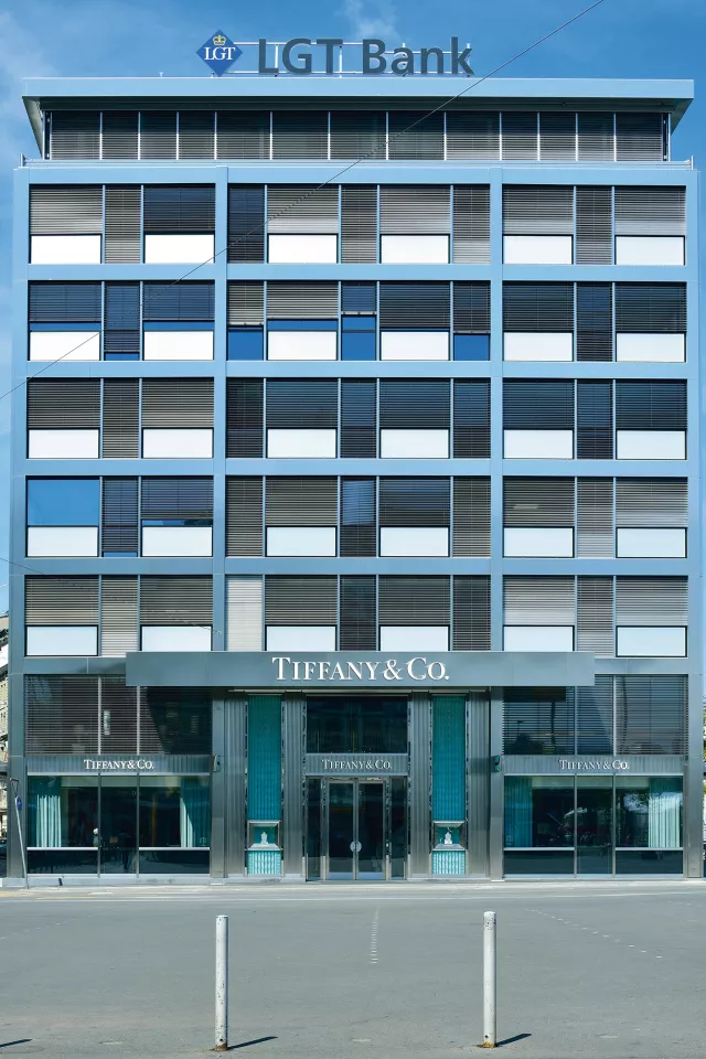La mission principale du bureau, en collaboration avec l'architecte Benoît Dubesset, est de renouer avec le bâtiment d'origine signé Marc-Joseph Saugey. Dans la continuité des principes de ce dernier, une trame rigoureuse marquée par des lignes horizontales et verticales ainsi qu'un double socle à usage commercial sont repris. Il est aujourd'hui occupé par une prestigieuse joaillerie. Achevé en 2015, ce bâtiment restitue à la Ville de Genève un objet de grande valeur architecturale.