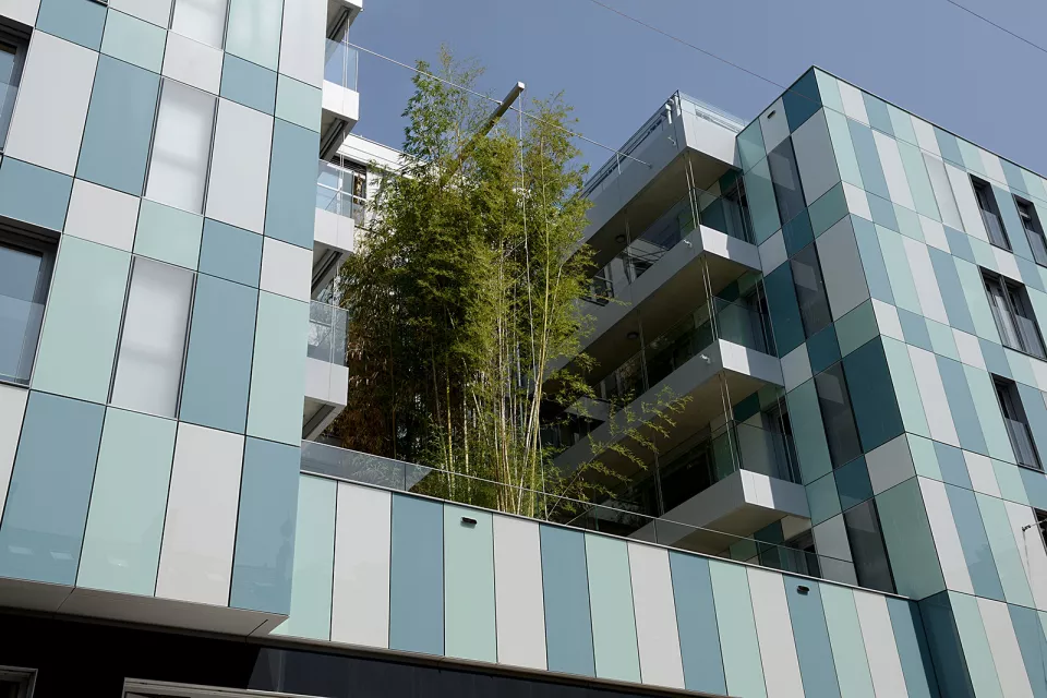 Au cœur du quartier des Pâquis, l’ancien bâtiment, qui accueillait autrefois la centrale téléphonique de Swisscom, a été réaménagé en collaboration avec Reynaud-Gaillard architectes. Le rez-de-chaussée et le premier étage de la structure d’origine ont été conservés, tandis que de nouveaux niveaux ont été ajoutés. L’ensemble du projet a permis de créer soixante-sept logements.