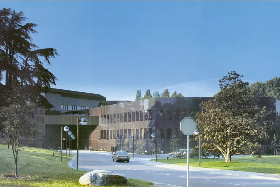 La société Caterpillar Overseas a son siège administratif depuis 1977 aux abords du parc de la Grange. «Un objet presque abstrait, très simple, posé au milieu du parc», telle est la description des architectes. Ses surfaces en verre, en granit Labrador et la simplicité des traitements extérieurs en font un bâtiment intemporel.