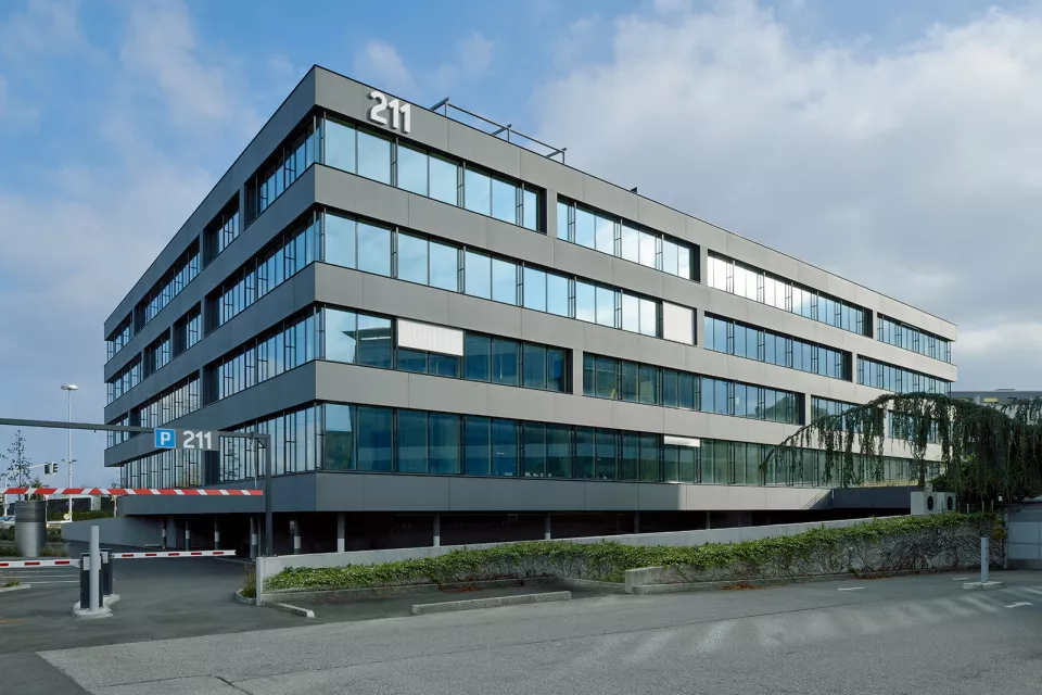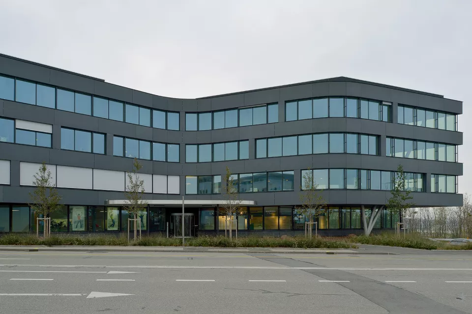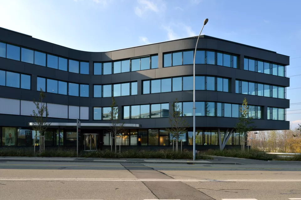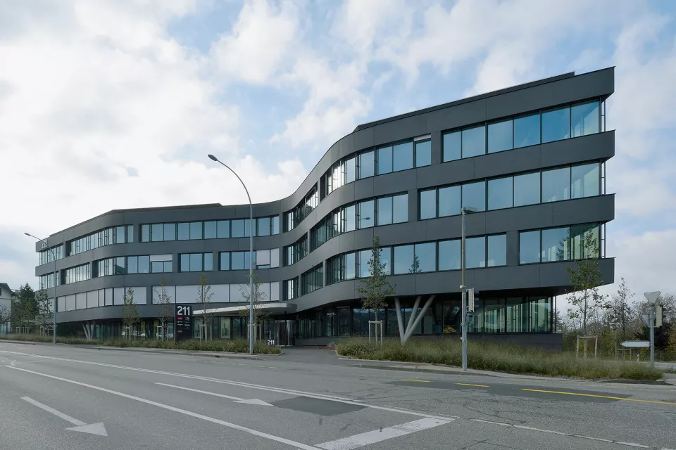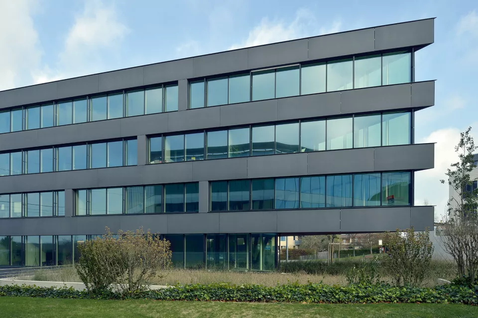 Stratégiquement bien situé, c'est le premier bâtiment visible à la sortie de la douane de Ferney-Voltaire. Le propriétaire de la parcelle, la société Aton Développement S.A., et Favre+Guth ont oeuvré ensemble afin de construire cet immeuble à vocation administrative. Il comporte deux souterrains, deux étages, un rez-de-chaussée et une terrasse panoramique. Deux types de façades se rejoignent sur des angles droits : des façades souples, ondulantes et des façades rigides, sèches.