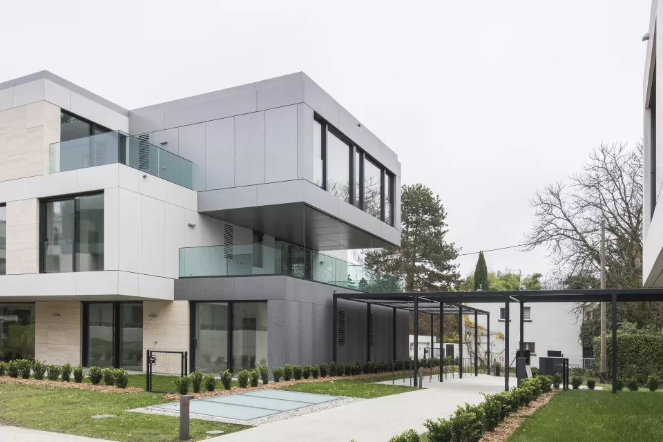 Au cœur d’une végétation luxuriante, Les Arases regroupent sept résidences contemporaines de trois niveaux, conçues pour s’intégrer harmonieusement au paysage préservé de Conches. Inspirés des demeures anciennes du quartier, les bâtiments de faible hauteur dialoguent naturellement avec les arbres du parc. Le jeu subtil de volumes suspendus offre à chacun des 57 logements de généreuses terrasses, jardins ou loggias en continuité avec la nature. Situé à Chêne-Bougeries, entre Florissant et Veyrier, le quartier bénéficie de tous les services de l’agglomération genevoise.