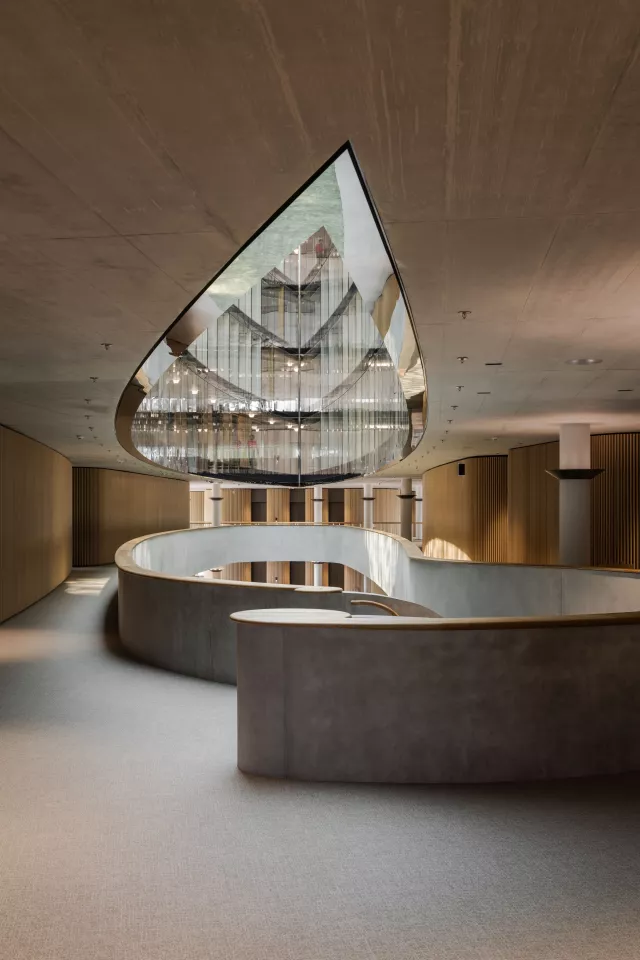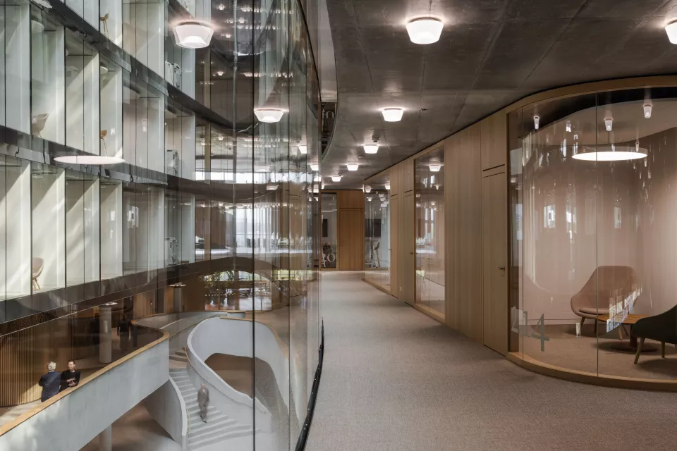 Le nouveau siège de la banque Lombard Odier, implanté à Bellevue en bordure du Léman, s’inscrit avec sobriété dans son environnement paysager. Conçu pour accueillir 2 600 collaborateurs, il affirme une vision unitaire fondée sur les valeurs d’excellence, d’innovation et de durabilité.