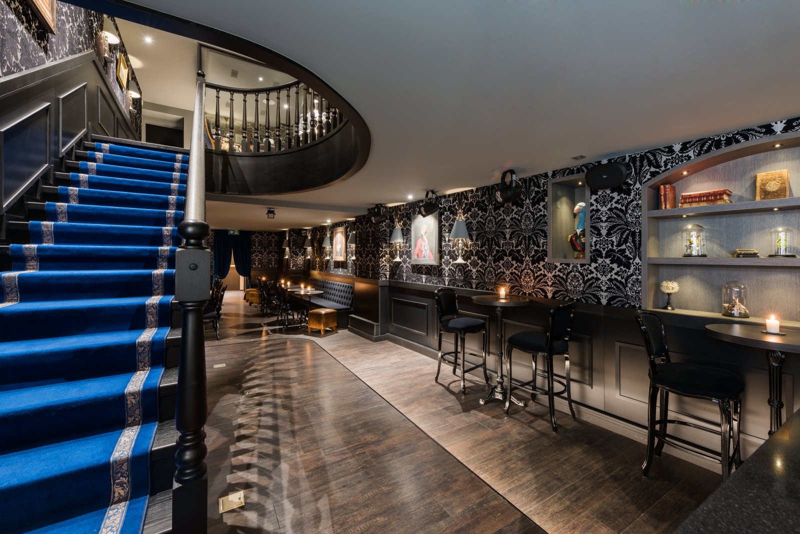 L’intégration des deux étages se fait par le vide proche l’escalier qui augmente la qualité de l’espace et renforce l’idée de maison du XVIIIème siècle. Le concept est d’attirer le public dans un espace surréel et décalé pour profiter d’un bon cocktail.